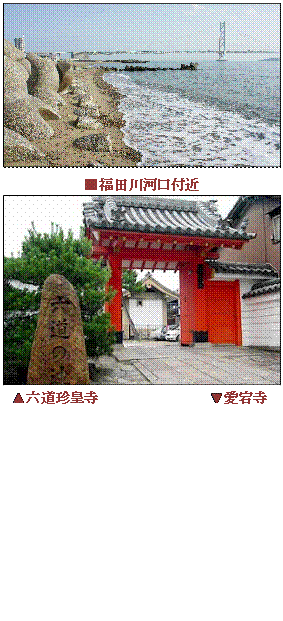 【注】『高倉院厳島御幸記』(厳島神社参詣の高倉院に随行した土御門内大臣源通親(みちちか)の紀行文)「須磨・明石・高砂の湊」から播磨国山田の部分を引用する。