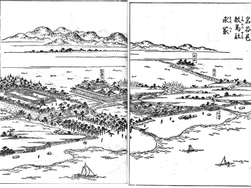 なお、図絵や写真で分かるように、神社の階段下はすぐ海岸(現・国道43号)だった。