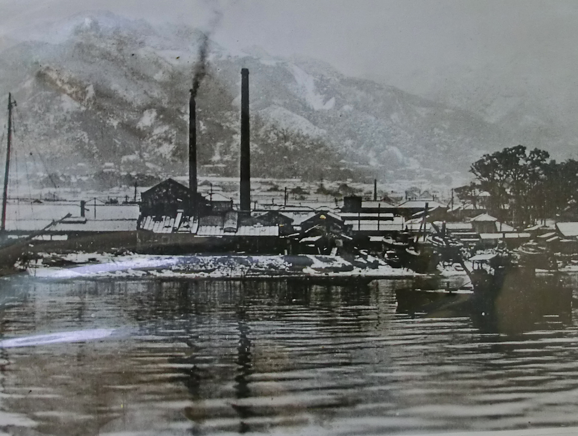 煙突は日輪ゴム会社。(現地、神社掲示板より