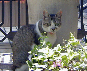 私の家には、「ありきたりな名前ね」といわれるミーという雌猫がいる。白と黒と灰色の三毛猫? だ。隣家の猫だったけれど、お隣さんが引っ越したときに彼女は残って我が家の猫になった。ミーは餌を食べるときを除いて、家の中には入ってこない。だから、正確に言うと、庭猫。彼女自身は我が家の猫と思っていないかもしれない。